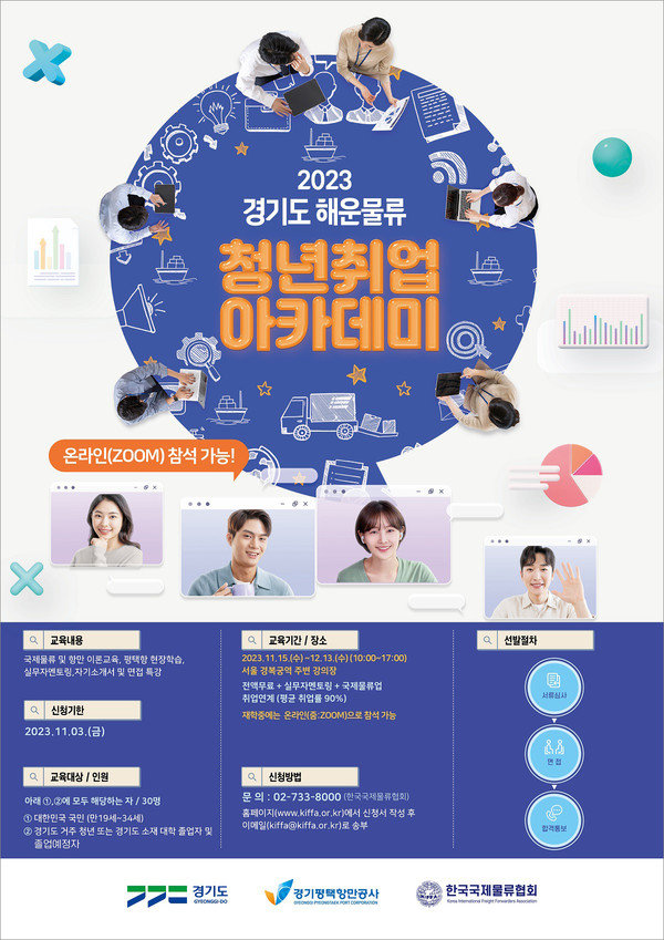 [고양신문] 경기도와 경기평택항만공사(사장 김석구)는 청년에게 ‘더 고른 취업 기회’와 ‘더 좋은 변화가 가득한 일자리’ 제공을 위해 '2023년 경기도 해운물류 청년취업 아카데미' 2차 교육생을 모집한다. '해운물류 청년취업 아카데미'는 해운물류 분야 취업을 희망하는 경기도 청년에게 해운물류 관련 실무 이론과 현장 교육, 취업역량 교육 등을 제공하는 프로그램이다.