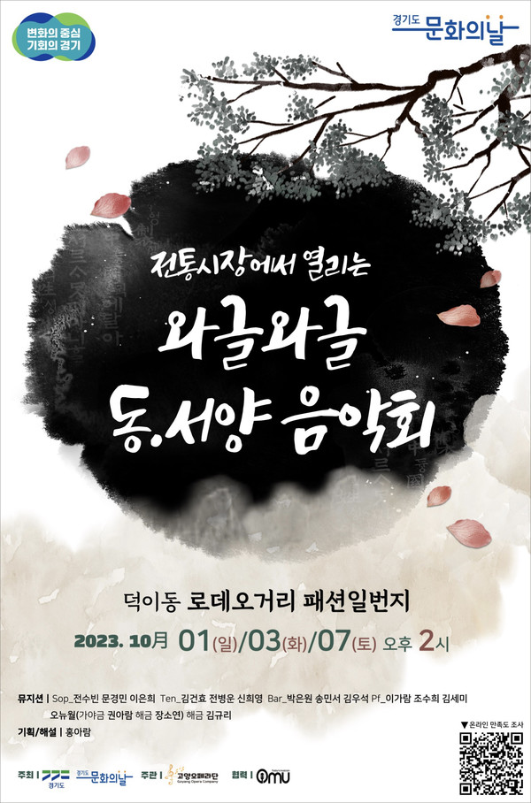 [고양신문] 고양오페라단과 (주)오뮤가 전통시장에 활기를 불어넣고 소상공인들의 사기진작과 시장 활성화에 도움을 주고자 덕이동 패션일번지와 협력해 '전통시장에서 열리는 와글와글 동·서양 콘서트'를 개최한다. 10월 1일부터 7일까지 총 3차례에 걸쳐 진행되는 이번 공연은 고양오페라단이 경기도에서 주최하는 ‘경기도 문화의 날’ 사업에 선정돼 (주)오뮤와 덕이동 패션일번지의 협력으로 진행한다.