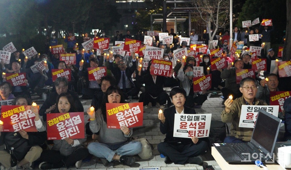 김훈래 상임대표는 “역사를 팔아먹는 적반하장 윤석열 정권, 시민을 갈라치기하는 반민주적 이동환 시정을 몰아내는 두 가지 목표를 함께 이뤄내기 위해 더 많은 시민들이 고양촛불문화제에 모여 한목소리를 내달라”고 호소했다.