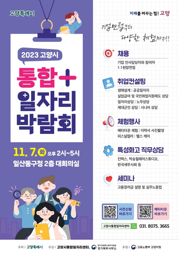 참여 희망하는 기업은 고양시통합일자리정보 홈페이지(www.goyang.go.kr/jobs) 또는 블로그(blog.naver.com/goyang_jobs)에서 자세한 내용을 확인해, 11월 3일까지 전화(031-8075-3665)로 신청하면 된다.