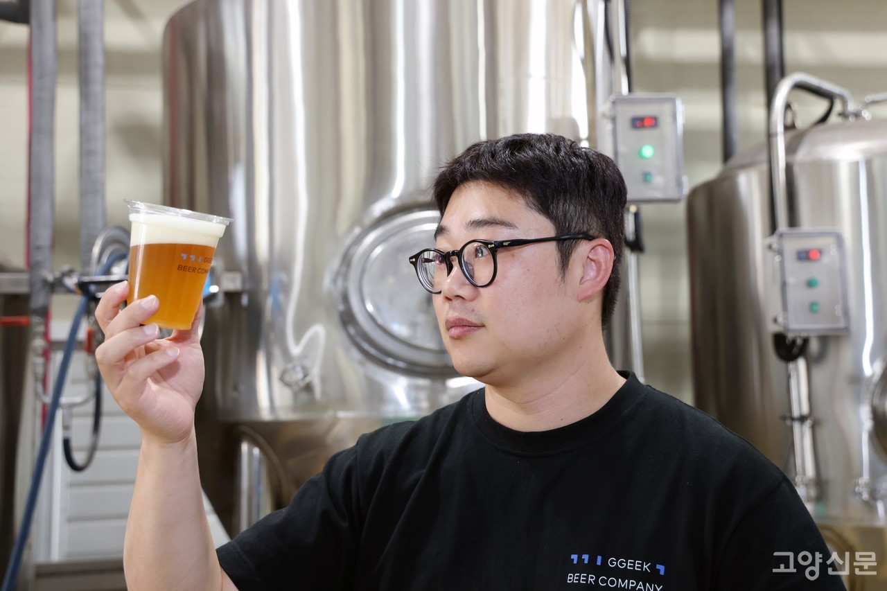 [고양신문] 코로나 엔데믹을 맞으면서 야외에서 나들이를 즐기는 이들이 늘어났다. 나들이에서 빼놓을 수 없는 맥주. 그중에서도 개성 있는 맛으로 사랑받는 수제맥주를 향한 관심도 많아졌다. 끽비어컴퍼니의 양조장은 2020년 덕양구 관산동에 둥지를 틀어 다양한 재료의 맥주화를 연구하고 있다. 고양시에서 독보적인 수제맥주를 선보이는 끽비어의 홍중섭 대표를 만나 이야기를 들었다.