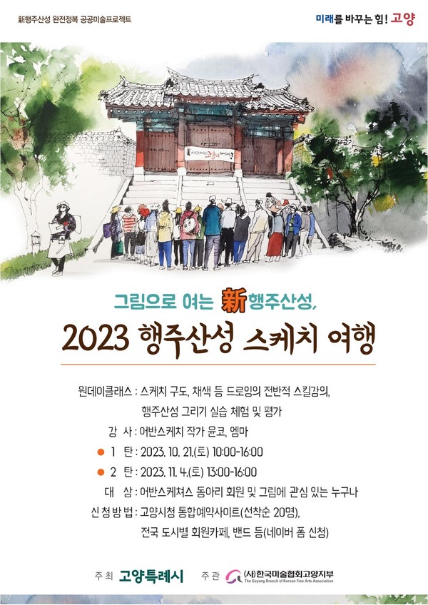 한편, 10월 28일 토요일 행주산성 정상 충의정에서는 지난 9월 개최된 ‘2023 행주산성 스케치 대회’에서 입상한 작품들의 전시와 시상식이 개최될 예정이다.