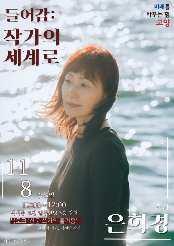 [고양신문] 고양시는 11월 8일 오전 백석동 요진 업무빌딩 3층 강당에서 은희경 작가를 초청해 북토크 ‘산문 쓰기의 즐거움’을 운영한다.