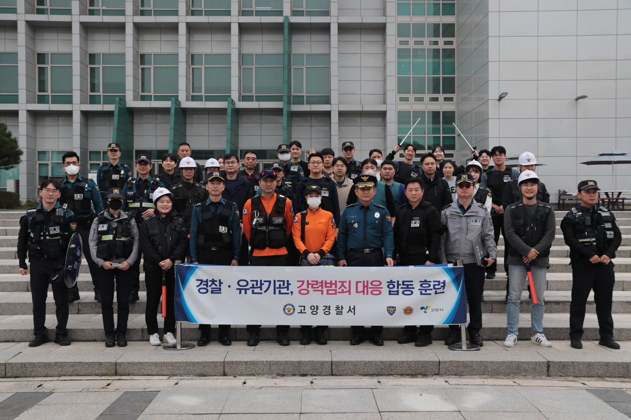 [고양신문] 고양경찰서는 25일 덕양구 고양어울림누리에서 소방 등 유관기관과 함께 강력범죄 대응훈련을 실시했다.