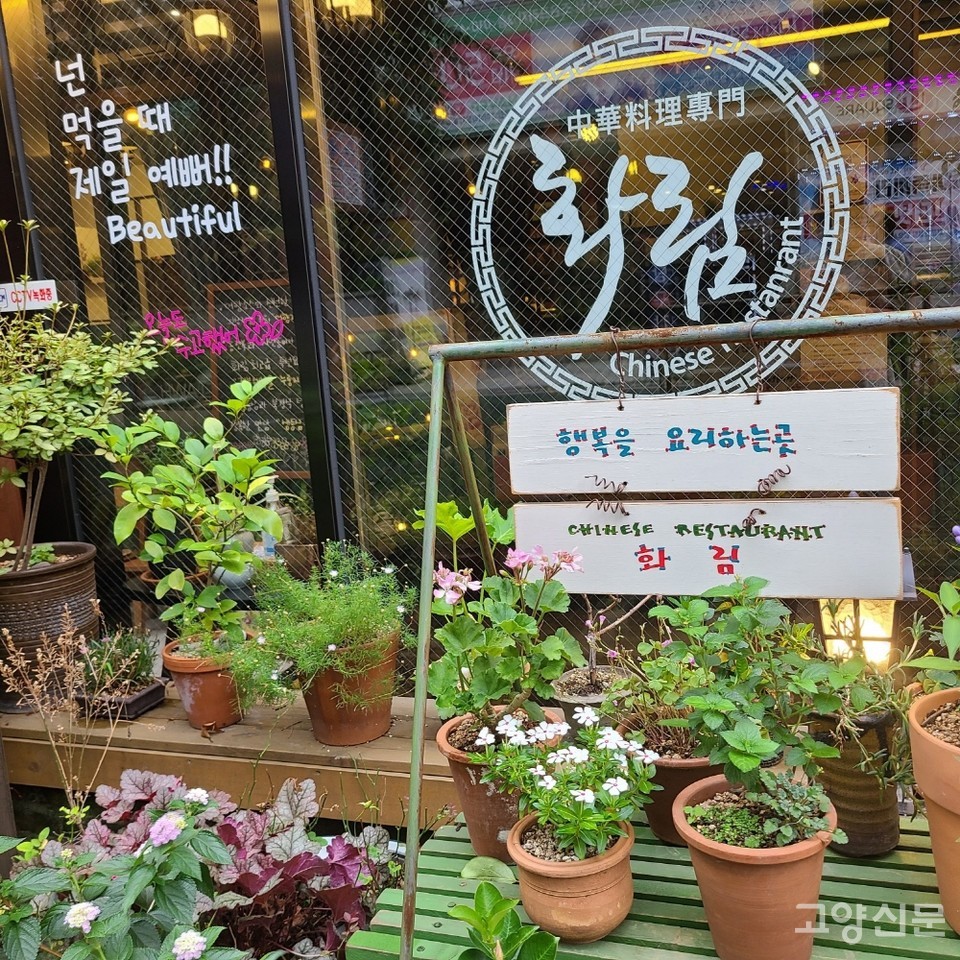 일산동구 이마트 풍산역점 뒤에 자리한 중식당 화림은 입구부터 여느 중식당과는 다르다. 봄에는 작은 꽃송이의 들꽃이 가득하고 여름엔 레몬이 주렁주렁 열리는 레몬 나무와 신록을 가득 품은 화려한 여름꽃들, 가을에는 국화, 겨울에는 크리스마스 트리장식으로 사계절 내내 화원인지 착각이 들 만큼 많은 꽃과 나무가 가득하다. 또한 화림 대표가 수십 년간 수집한 각종 소품과 미술 작품, 사진으로 갤러리처럼 꾸민 내부는 계절에 따라 항상 변화를 줘 자주오는 단골도 늘 새로운 모습으로 맞이한다.