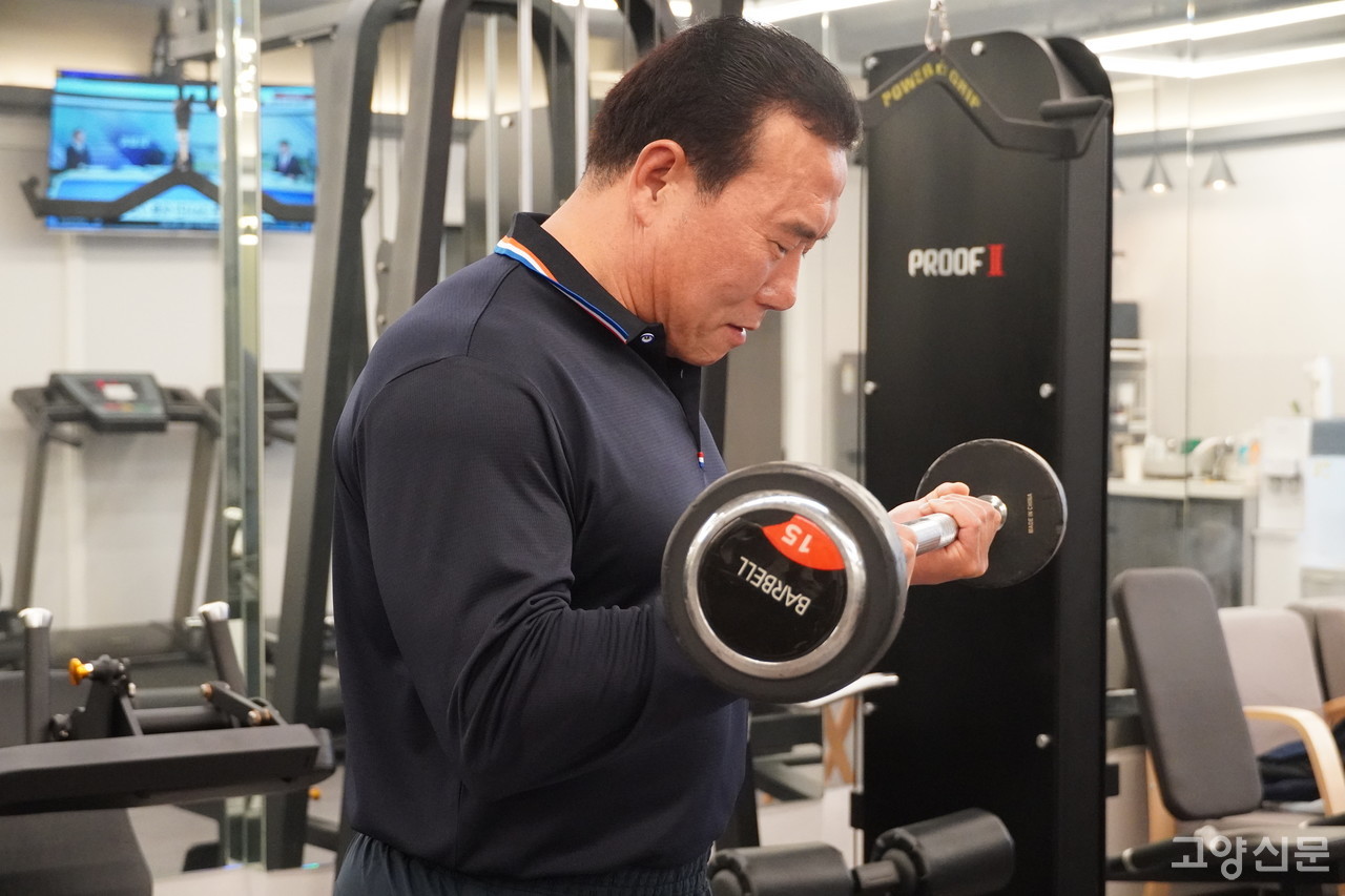 김동기 고양시보디빌딩협회장은 골프, 족구, 수영을 즐겨하던 열혈 스포츠인이었다. 나이가 들면서 허리디스크와 당뇨, 협압 등이 건강 문제로 다가왔다. 그러다 7년 전쯤 우연히 강종근 협회 실무부회장이 운영하는 헬스장에 가게 됐고 맞춤형 운동 코칭까지 받으면서 자연스럽게 헬스와 보디빌딩에 관심을 갖게 됐다. 김 협회장은 각종 대회에도 출전해 입상까지 이뤄냈다.