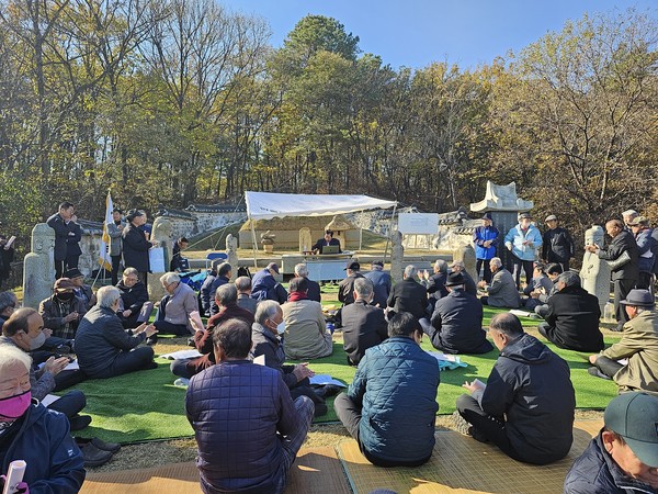 [고양신문] 덕양구 성사동에 있는 안동 권씨 추밀공파 정간공 권희 선생 묘소에서 21일(음력 10월 9일) 추향제가 봉행됐다. 추향제에는 코로나19가 완화되면서 전국 각지에서 후손 약 150명이 참석했다.