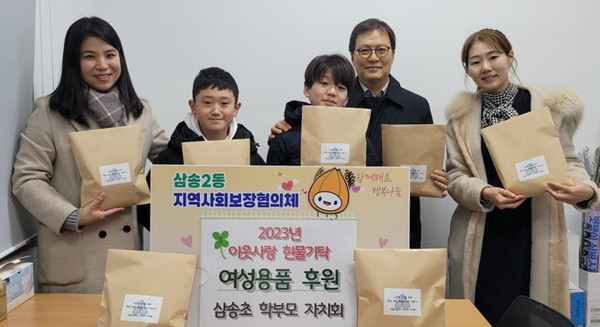 [고양신문] 삼송초등학교 학부모자치회는 지난 19일 저소득 가구 청소년을 위한 여성용품을 삼송2동 행정복지센터에 기탁했다. 한창 성장하는 청소년이 따뜻한 보살핌 속에서 한겨울을 지낼 수 있도록 도움을 보태자는 데에 뜻을 모은 이번 후원은 고양시자원봉사센터 소속 담당자와 학부모자치회가 협력해 이루어졌다.
