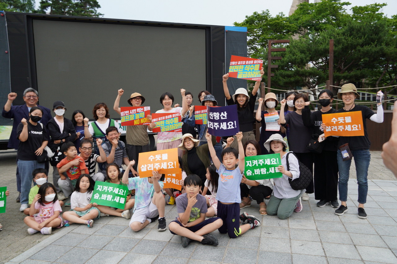 2014년부터 진행된 산황산 스프링힐스 골프장 증설계획 반대 시민운동이 10년 만에 결실을 맺었다. 고양시는 산황산 골프장 증설계획 환경영향평가의 실효성 만기 시점(2023년 7월 2일)을 이틀 앞둔 6월 30일, 골프장 증설 관련 실시계획인가에 대해 ‘미수용’ 결정을 발표했다. 이번 결정으로 골프장 사업자는 증설계획을 재추진하기 위해 환경영향평가 절차부터 다시 진행해야 하기 때문에 사실상 사업추진이 어렵게 됐다. 산황산 골프장 증설계획을 막아내는 데 가장 큰 공을 세운 이들은 지역 환경운동가들과 시민들이었다. 2014년 첫 기자회견을 시작으로 3년 6개월의 유례없는 시의회 앞 증설반대 천막농성과 수십 차례의 기자회견, 지역별 촛불문화제 등 다양한 활동을 펼쳐왔으며 조정 고양환경운동연합 공동의장은 17일간 단식농성을 펼친 바 있다. 범시민대책위와 기독교대책위는 시의 발표 일주일 뒤 10년간의 시민불복종운동을 마무리하는 기자회견을 가졌다.