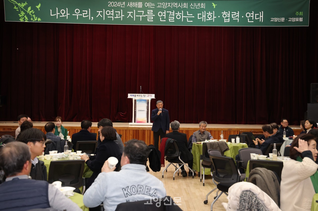 [고양신문] 지역사회 시민들이 한자리에 모이는 신년회가 열렸다. 고양신문은 '나와 우리, 지역과 지구를 연결하는 대화·협력·연대'를 주제로 15일 일산동구청 강당에서 2024년 지역사회 신년회를 열었다.