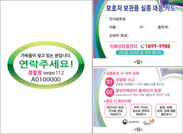 무상으로 배부되는 인식표에는 이름과 사진, 주소, 보호자 연락처 등의 정보가 담겨 있어 치매안심센터와 경찰서 전산시스템으로 실종 노인 신상정보 확인이 가능하다.