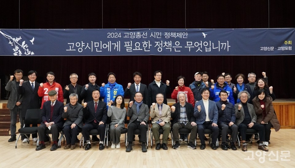 [고양신문] 대의민주주의의 간판인 국회의원들에게 고양시민들은 어떤 정책을 기대하고 있을까? 총선을 50여 일 앞두고 시민들이 직접 도출해 낸 정책제안을 총선 예비후보들에게 전달하는 자리가 열렸다. 19일 일산동구청 강당에서 개최된 104회 고양포럼은 ‘2024 고양총선 시민 정책제안’이라는 주제를 내걸고 △자치 △도시·교통 △지역경제 △교육 △문화 5개 분야의 제안을 시민 목소리로 발표했다.
