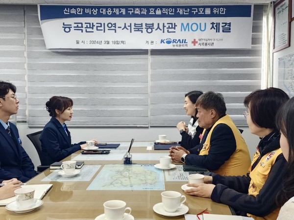 이날 협약식에는 김지현 한국철도공사 능곡관리역장, 변지현 대한적십자사 경기도지사 서북봉사관장, 박진수 대한적십자사봉사회 고양지구협의회장이 참석했다.