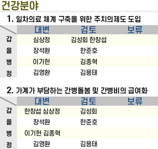 마지막으로 의료건강분야에서는 일차의료체계 구축을 위한 주치의제도 도입과 고령화 사회 가계부담의 원인인 간병돌봄 및 간병비 급여화 등이 제안됐습니다.