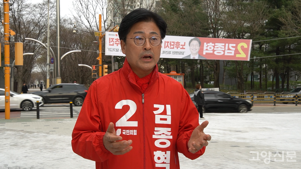 2일 저녁 마두역 광장에서 만난 고양병 김종혁 국민의힘 후보에게 이번 총선의 의미를 물었더니 “고양은 심판 대상이 다르다”는 답변이 돌아왔다. 김 후보 역시 이번 총선의 흐름이 여당에 낙관적이지 않다는 세간의 전망을 부정하지 않았다. 그러면서도 일산의 유권자들만큼은 변화를 선택해 주실 것이라고 말했다. 교통, 일자리, 지역발전 등 일산의 가치가 상대적으로 뒤쳐졌다는 시민들의 불만이 어느 때보다도 팽배해 있기 때문이라는 설명이다.
