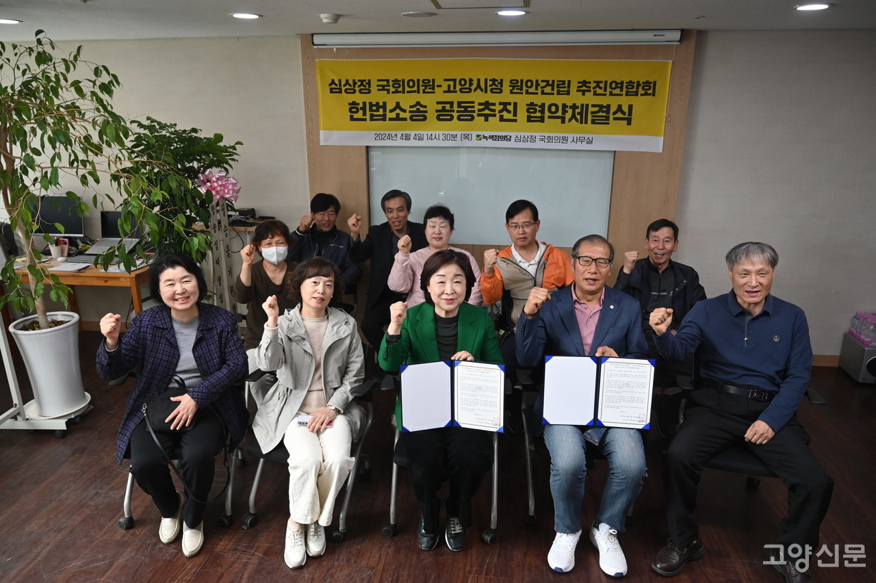 심상정 후보와 원안건립추진위 주민들은 4일 심상정 후보 선거사무실에서 정책협약식을 체결하고 신청사 원안건립을 위한 헌법소송에 나서겠다고 밝혔다. 앞서 원당 신청사 조기착공을 위한 법률대응 패키지를 총선공약으로 발표한 바 있는 심상정 후보는 조속한 착공을 위해 100명의 주민소송단과 함께 선거를 이틀 앞둔 8일 즉각적인 헌법소송에 나설 예정이다. 소송단의 법률대리인은 조영관 녹색정의당 법률지원단장(법무법인 덕수 변호사)이 맡는다.