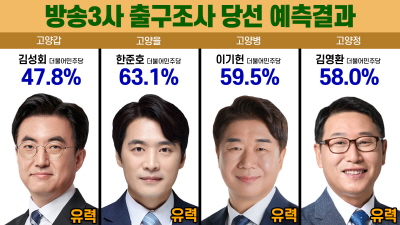 [고양신문] 4·10총선 투표일인 10일 오후 6시 발표된 지상파 방송 3사(KBS, MBC, SBS) 공동 출구조사 결과, 고양시 4개 선거구 모두 더불어민주당이 크게 우세한 것으로 나타났다.