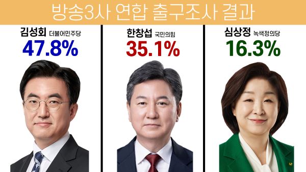 방송3사 출구조사 결과, 국민의힘 후보들과 20% 안팎 큰 격차