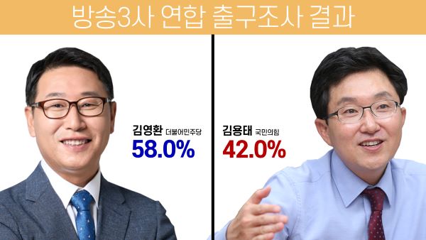 고양시정 더불어민주당 김영환 후보 역시 완승이 예상된다. 김영환 후보의 출구조사 득표율은 58.0%, 김용태 후보의 득표율은 42.0%로 두 후보의 격차는 16%p에 이른다.