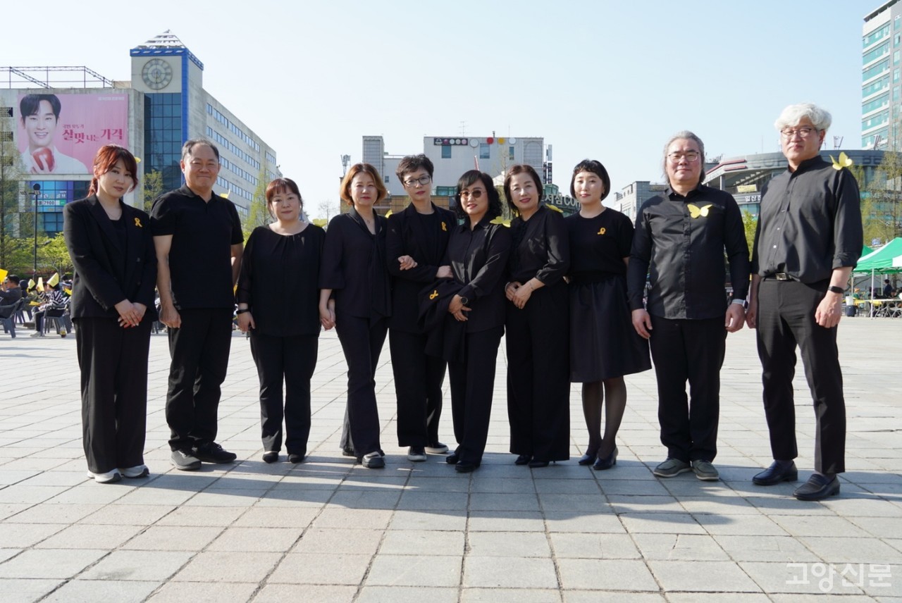 [고양신문] 세월호 참사 10주기(4월 16일)를 사흘 앞둔 13일, ‘10주기 기억식 및 추모 문화제’가 일산문화광장에서 열렸다. 세월호 참사 10주기 고양시민준비위원회가 주관하고 고양시민회, 고양여성민우회 등 고양에서 활동하는 14개 단체·기관이 공동주최한 이 행사에는 200여 명의 고양시민이 모였다.