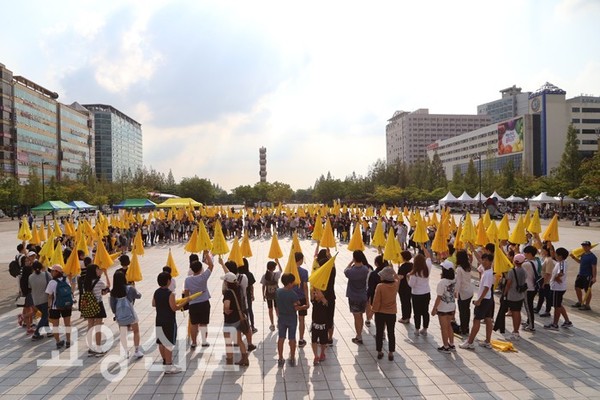 “초창기 100여 명 시민이 소통 밴드를 만든 게 세일모의 출발이에요. 2014년 가장 먼저 시작한 일이 길거리 서명전이었어요. 천막 하나 없던 시절이었지만, 평일에는 저녁 시간에, 주말에는 낮부터 비가 오나 눈이 오나 매일 서명대를 펼쳤지요. 볼펜이 얼어버리는 추운 날에는 세일모의 아지트 역할을 했던 대화동 아시아의친구들 사무실에서 유가족, 또는 청소년들과 함께 리본을 만들기도 했고요. 이후 노란천막을 장만하고, 노란색 단체티셔츠를 맞춰 입으며 장기전으로 들어갔습니다. 1주기를 맞아 세월호를 기억하는 시민 참여문화제를 열었고, 이후 매년 4월에 기억문화제를 이어오고 있습니다.”
