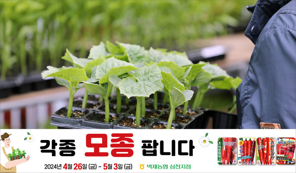 [고양신문] 벽제농협(조합장 우상훈)이 농민 편의를 위한 모종판매를 4월 26일부터 5월 3일까지 8일간 벽제농협 심천지점에서 한다. 매년 4월 말이면 꾸준히 30여 가지의 모종을 판매해 온 벽제농협은 올해도 농민들에게 다양하고 건강한 모종을 판매한다.