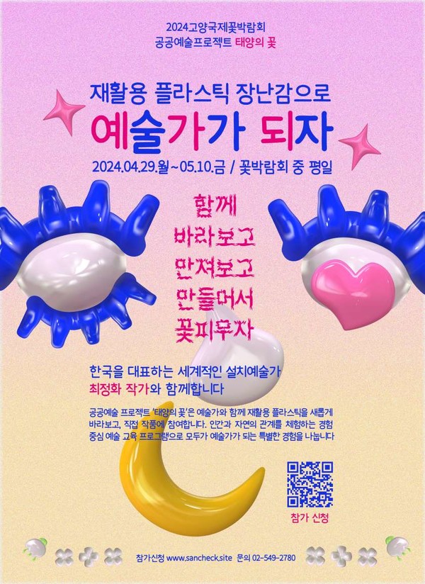 [고양신문] 꽃과 지구환경을 위한 체험·놀이 참여 프로그램 <태양의 꽃> 프로젝트가 고양국제꽃박람회 기간인 오는 29일부터 5월 10일까지 행사장 내 노래하는 분수광장에서 운영된다. 고양시 학생·학부모·시민이 참여해 만든 공공예술프로젝트인 이번 행사는 경기도고양교육지원청, 농협은행 고양시지부, 고양상공회의소 사회공헌위원회와의 협업으로 진행되며 ㈜태건비에프, ㈜씨제이라이브시티, ㈜그림, ㈜디와이디, ㈜코스모전기, ㈜포스콤, ㈜루트로닉이 후원한다.