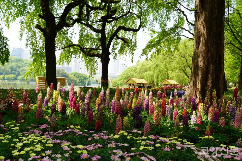 전시공간이 넓어지며 예년에 볼 수 없었던 멋진 포토존들이 수변정원을 따라 줄줄이 이어진다. 연둣빛 새순이 올라오는 버드나무와 갈대군락을 배경으로 형형색색의 꽃봉오리들이 아름답게 어우러진다.