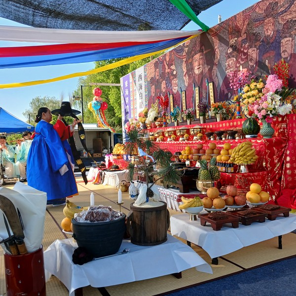 [고양신문] 고양 행주나루 강풍어제 보존회(회장 천미숙)는 지난 27일 오후 2시 행주산성 역사공원에서 제9회 고양행주나루 강풍어제를 열었다. 돌돌이 첫 굿거리를 시작으로 부정청배(굿 진행 전 나쁜 기운을 몰아내고 시작을 알림), 산거리, 용신맞이, 용왕굿, 장군거리굿 등으로 등으로 띄뱃놀이 띠배에 각 가정의 액운과 마음의 액살을 실어보내는 액살풀이로 강 풍어제를 마쳤다.