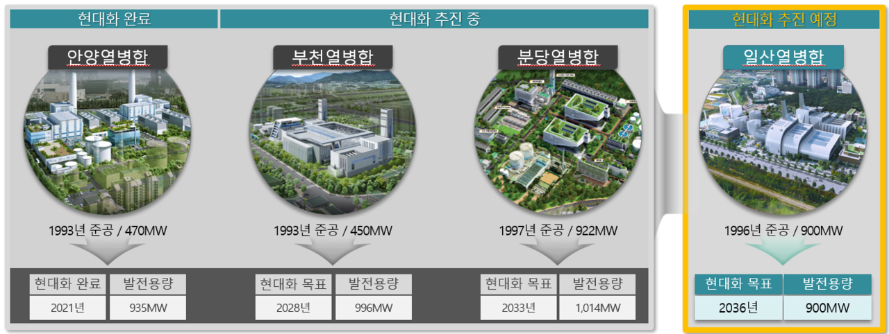 일산열병합발전소를 운영하는 한국동서발전(주)에 따르면 2036년 설비 준공을 목표로 현대화 사업을 추진하고 있다. 앞서 2022년 9월 발전설비 현대화 사업을 위한 사전 타당성조사 용역을 진행했으며 작년 1월 제10차 전력수급기본계획에도 해당 사업이 조건부 반영됐다. 발전소 측은 올해 상반기 중으로 산업통상부 발전사업 변경허가 신청을 마친 뒤 하반기 기재부 예비타당성조사와 환경영향평가 등을 거쳐 내년 착공에 나선다는 계획이다.