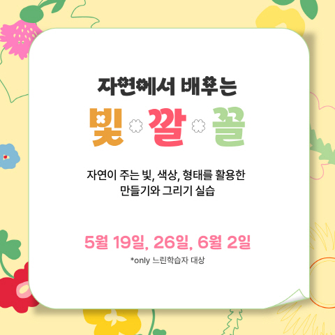 이달 19일 시작하는 첫 번째 시리즈인 '자연의 빛, 깔, 꼴'은 자연에서 영감을 받으며 진행하는 느린학습자를 위한 디자인 체험교육이다. 자연에서 찾을 수 있는 빛, 색상, 형태를 활용해 창작활동을 하는 것으로, 느린 학습자의 인지, 감각, 감성을 자극한다.