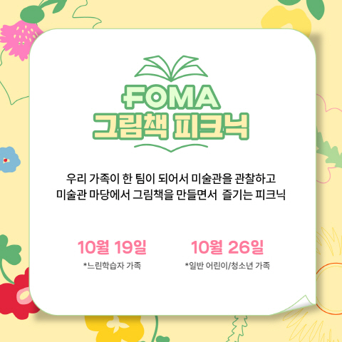 느린학습자 체험교육 시리즈에 대한 상세한 소개와 참가자 모집개요는 포마미술관 홈페이지(FOMA.kr)와 인스타그램(FOMA_KR)에서 확인할 수 있다. 문의 010-9220-4661