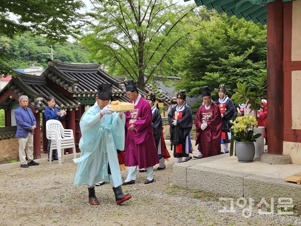 [고양신문] 고양향교는 지난 11일 공부자탄강 2575주년 춘기석전을 봉행했다. 식전행사에서 이용우·최웅근·신월숙씨에게 신임장의 임명장을 수여했고, 고양향교 발전에 많은 노력을 기울인 이종원 고양향교 감사와 정영애 성균관유도회 고양지부 전 여성유도회장에게 표창장을 수여했다. 또한 고양시의 역사와 전통문화를 수호하는 데 큰 역할을 한 고부미 고양시의회 문화복지위원장에게 감사장을 수여했다.