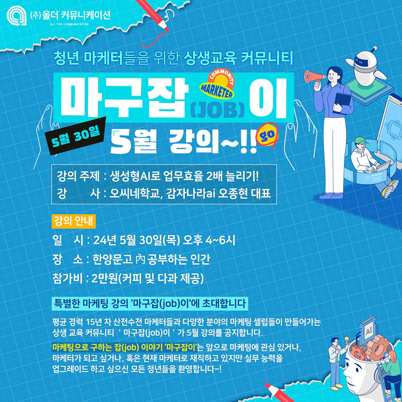 청년 마케터 커뮤니티 '마구잡이', 30일 오종현 감자나라ai 대표 초청 강의