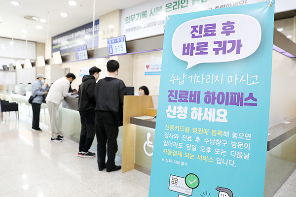 진료비 하이패스란 사전에 신용카드나 체크카드 정보를 병원에 등록해 놓는 제도로, 진료 후 자동 결제되는 방식이다. 진료나 검사 후 바로 귀가할 수 있어 수납으로 인한 불필요한 동선과 대기시간을 줄일 수 있다.