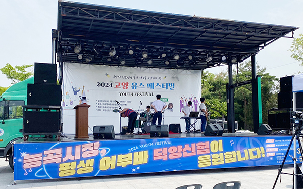 토당문화플랫폼에서 25일 진행된 고양 유스페스티벌은 청소년들의 건전한 문화예술 기회 조성을 위해 능곡시장상가번영회에서 주최한 지역행사다. 이번 2024 고양 유스페스티벌에는 7팀의 청소년들이 참여해 노래와 춤 등을 선보였다.