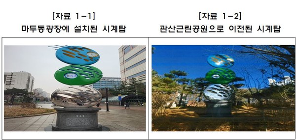 이어 “공공조형물 이전을 위한 심의위원회 심의내용을 살펴보면 다수위원들이 주민의견 수렴이나 디자인 변경을 권고하고 있다”며 “이는 심의위원회에서도 시계탑과 관산근린공원 간의 부조화를 인지하고 있었다는 것”이라며 꼬집었다.