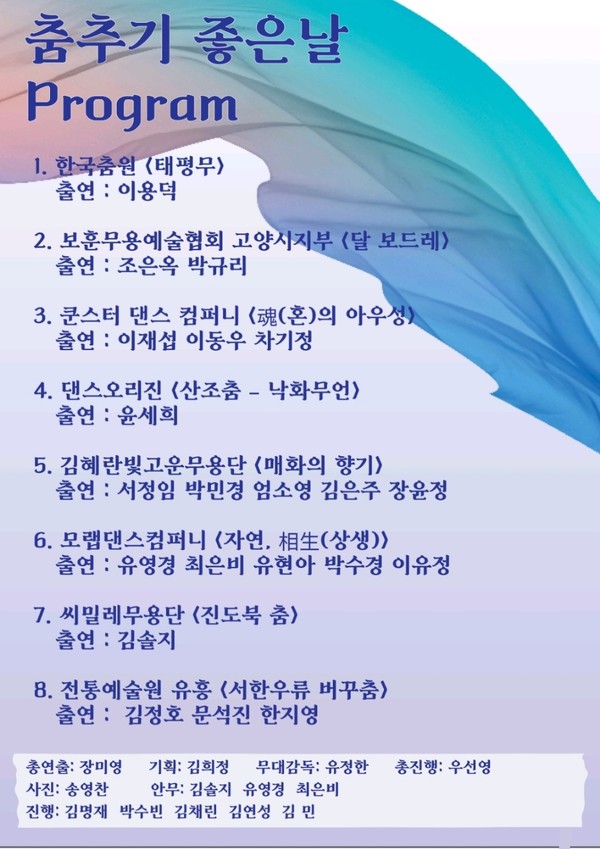 #라움무용단 #고양무용협회 #장미영 회장 #고양시 무용단체 #고양예총 #전통예술원 유흥 #씨밀레무용단 #모랩댄스컴퍼니 #김혜란빛고운 부용단 #댄스오리진 #쿤스터 댄스 컴퍼니 #보훈무용예술협회 고양시지부 #한국춤원 #춤추기 좋은날
