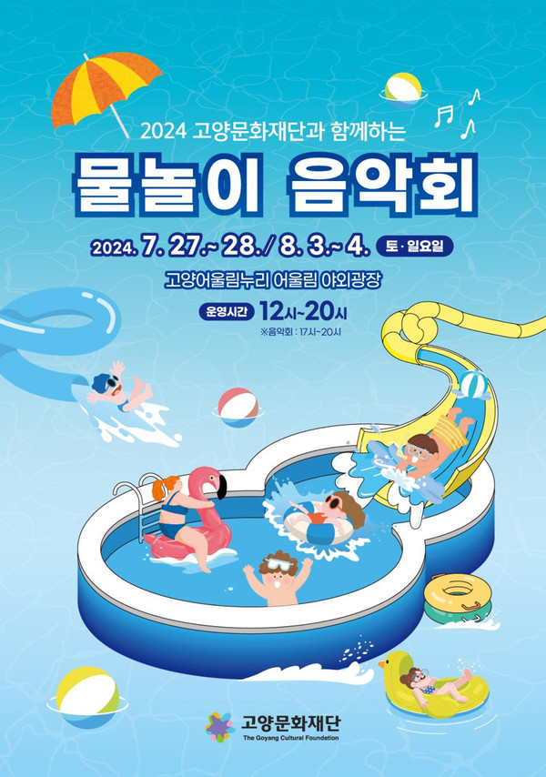 고양문화재단이 시민들에게 휴식과 활력을 선사하기 위해 기획한 이번 물놀이음악회는 영·유아와 어린이 관람객이 즐길 수 있는 물놀이 시설과 야외에서 즐기는 작은 음악회 프로그램이 만난 여름 대표 문화피서 프로그램이다.
