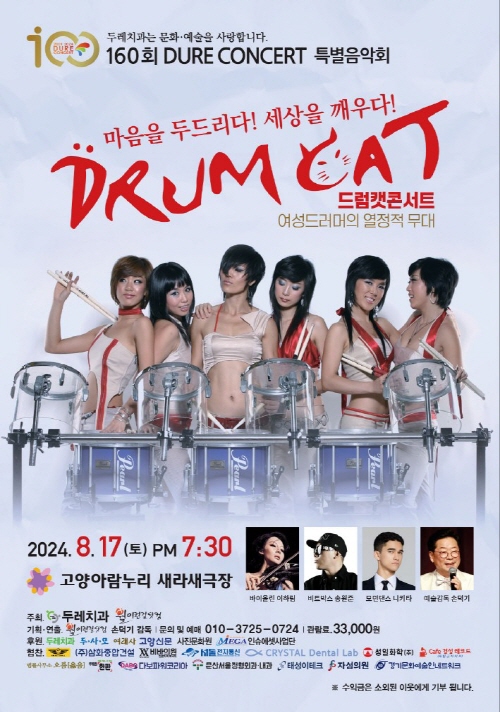 [고양신문] 고양을 대표하는 공연예술 무대인 두레콘서트(대표 황선범, 예술감독 손덕기)가 역사적인 160회 공연을 연다. 다음달 17일 고양아람누리 새라새극장에서 개최되는 160회 두레콘서트는 대한민국을 넘어 세계를 무대로 활약하는 여성드러머 퍼포먼스그룹 <드럼캣 콘서트>로 관객들을 맞는다.