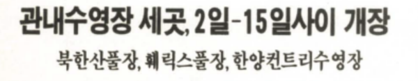 당시 세 곳 모두를 가 본 기자의 기억을 소환하자면, 주변 환경은 역시나 웅장한 산자락에 둘러싸인 북한산풀장이 으뜸이었다. 하지만 차가운 계곡물을 그대로 수영장물로 사용하는 바람에 조금 놀다 보면 몸이 달달 떨리고 입술이 파래지곤 했었다.