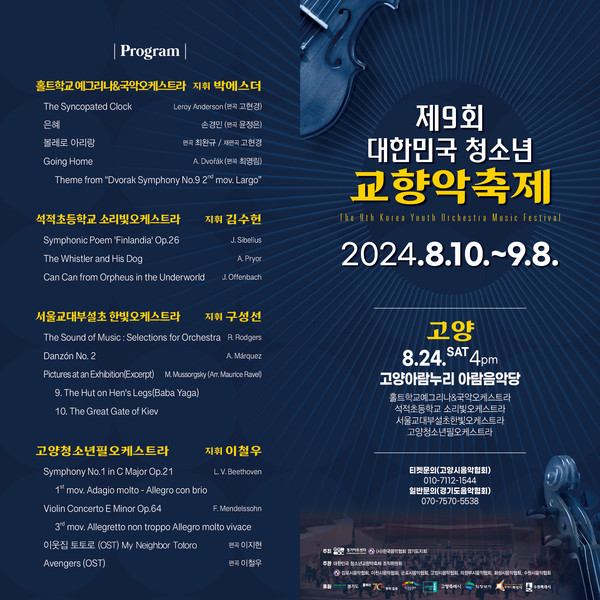 청소년 연주자들이 빚어내는 화려한 하모니와 그들의 음악적 열정이 가득한 이번 공연은, 고양 시민들과 전국에서 모인 관객들에게 잊지 못할 감동을 선사할 것이다.