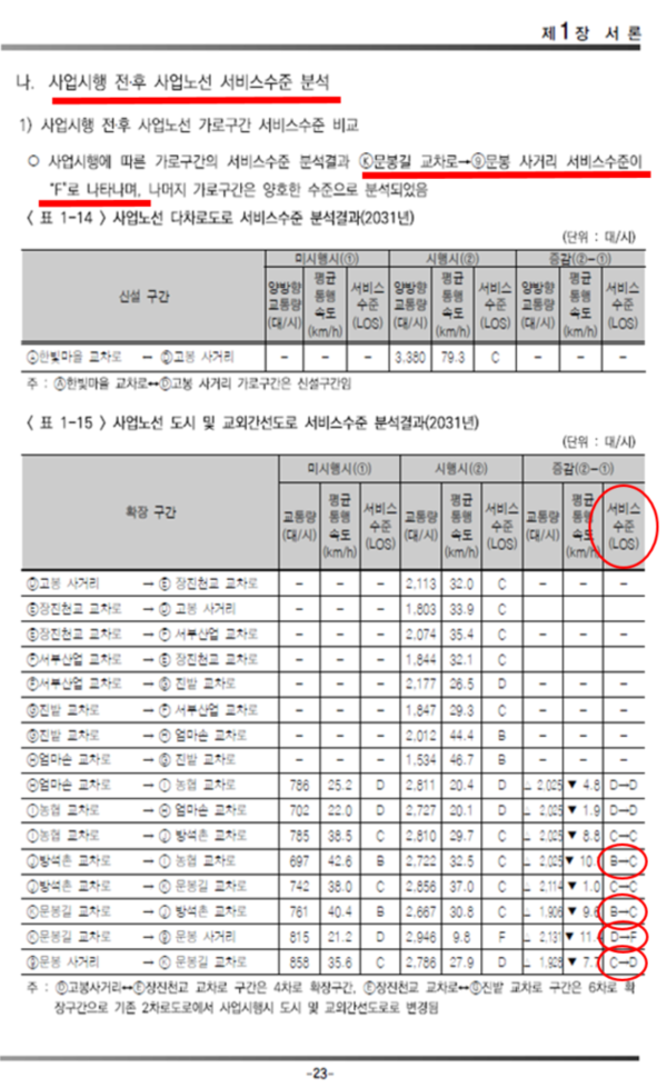문봉~관산 개통후 교통 서비스 오히려 낮아져