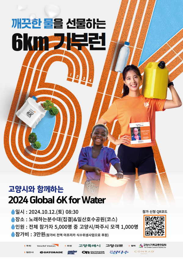 글로벌 6K 참가비는 3만원이며, 아프리카 식수위생사업에 전액 후원될 예정이다. 참가자들에게는 기념티셔츠 완주메달 스트링백 등의 푸짐한 기념품이 전달된다. 행사는 고양특례시와 고양신문이 후원하고, 고양시기독교연합회가 함께 협력한다.