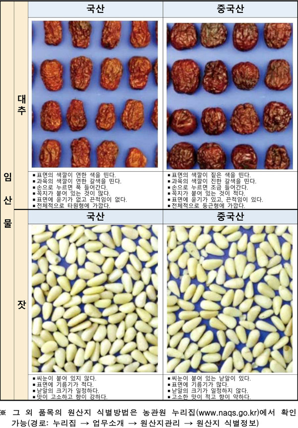 이번 추석 성수품* 중 주요 임산물에 대해서는 산림청과 합동점검을 실시하며, 외국산을 국내산으로 거짓 표시하거나 인지도가 낮은 지역 농산물을 유명 특산품으로 속여 판매하는 행위에 대해서는 형사처벌을 하고, 원산지를 표시하지 않은 행위는 과태료를 부과 할 예정이다.