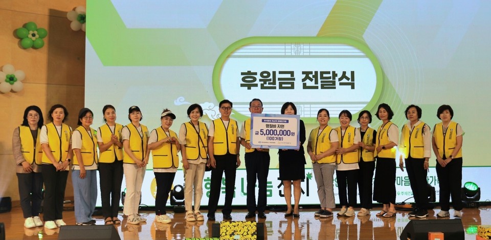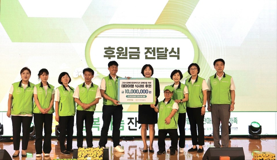 [고양신문] 고양시장애인종합복지관(관장 신혜용)은 10일 추석명절을 앞두고 장애인 300여 명과 가족들을 초대해 ‘행복나눔잔치’ 행사를 열었다. 이날 행사에 고양상공회의소(회장 이상헌) 사회공헌위원회(위원장 김만석)와 ㈜태건비에프(대표 김만석)는 각각 1500만원, 1700만원의 후원금을 복지관에 전달했다. 이 후원금은 장애인 100가구의 명절비, 여행 식사비 등으로 쓰일 예정이다.