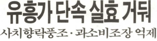사실 문화와 유흥은 한끗 차이다. 둘 다 먹고 사는 문제를 초월해 삶을 더 행복하고 즐겁게 영위하기 위한 ‘욕구’를 바탕으로 한 행위들이기 때문이다. 고양신문을 통해 고양의 근과거사를 살펴보면 80년대 후반 향락문화의 폭발적 성장기가 있었음이 감지된다. 이런 류의 기사들은 대개는 퇴폐, 불법, 단속, 적발 등의 부정적 단어들을 동반하며 등장한다.