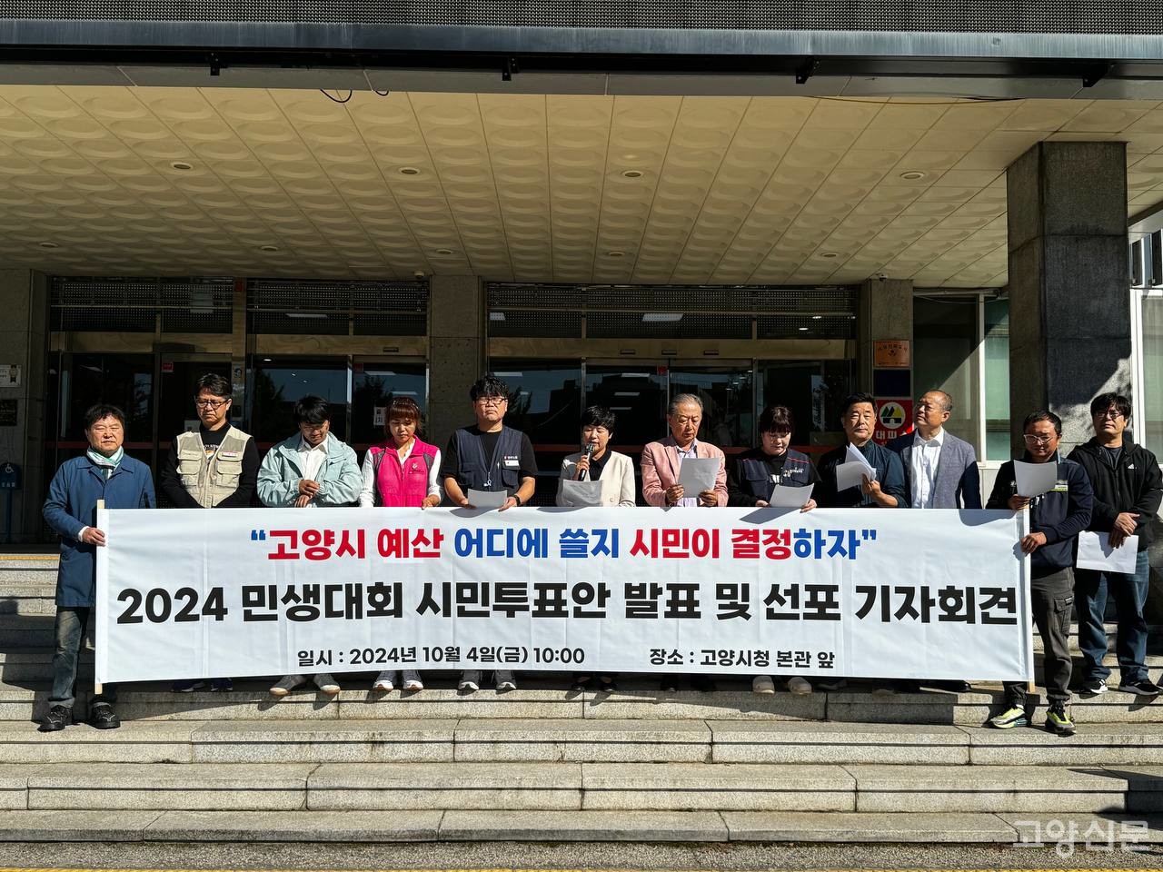 지난 4일 진보당과 민주노총 고양파주지부, 시민사회연대회의 등 지역사회 정당·시민사회에서 올해 본예산 책정을 앞두고 고양시민들이 직접 바라는 예산정책을 제안하기 위한 2024 민생대회 시민투표안 선포 기자회견을 가졌다. 고양민생대회는 고양시에 바라는 정책을 고양시민들이 직접 제안하는 직접정치 활동으로 작년 첫 행사에서 4000여 명의 주민들의 의견을 받아 10대 요구안을 제출하기도 했다.