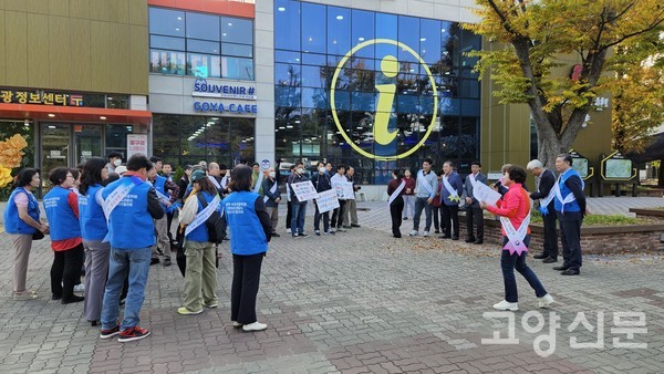 [고양신문] 의정부 보호관찰소 고양지소(소장 김택준) 고양파주보호관찰위원협의회(회장 이원희)는 지난 17일 일산문화광장에서 보호관찰위원일산지구(회장 나상호), 보호관찰위원파주지구(부회장 이연우), 금성의집(원장 신인철) 등에서 50여 명이 참여한 가운데 ‘범죄없는 밝은 사회 우리 함께 만들어요!’라는 범죄예방 캠페인을 실시했다. 참가자들은 일산문화광장과 라페스타, 웨스턴돔을 돌며 물티슈를 나누며 범죄예방 캠페인을 펼쳤다.
