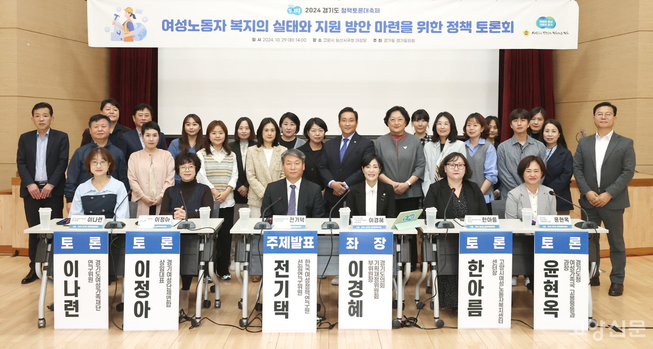 이경혜 경기도의회 기획재정위원회 부위원장(더불어민주당, 고양4)이 좌장을 맡은 '여성노동자 복지의 실태와 지원 방안 마련을 위한 정책 토론회'가 지난 29일 일산서구청 대강당에서 열렸다. 이 토론회는 경기도의회와 경기도가 공동 주최하는 ‘2024 경기도 정책토론 대축제’의 일환으로 여성 노동자의 복지 현황을 종합적으로 점검하고 실질적인 지원 방안을 모색하기 위해 마련됐다.